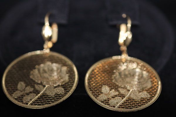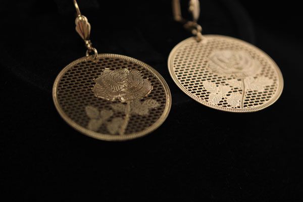 14K GOLD PLATED FLOWER DESIGN DANGLE EARRING **|**|** 14K GOLD PLATED FLOWER DESIGN DANGLE EARRING ; METAL BRASS; BRAZILIAN JEWELRY; 14K GOLD PLATED ; MSRP: $0