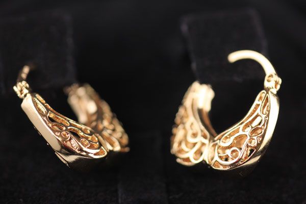 14K GOLD PLATED INTRICATE DESIGN HOOP EARRING **|**|** 14K GOLD PLATED INTRICATE DESIGN HOOP EARRING ; METAL BRASS; BRAZILIAN JEWELRY; 14K GOLD PLATED ; MSRP: $0