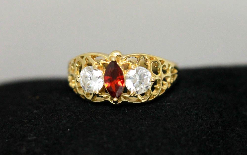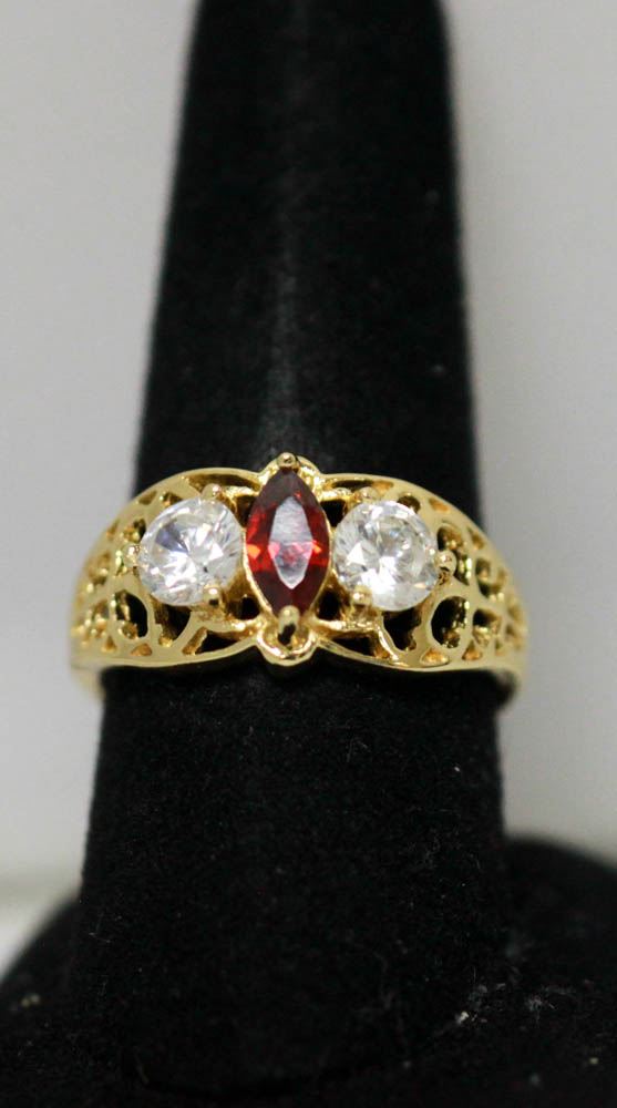 14K GOLD PLATED RING W/ RED & CLEAR CZ **|**|** 14K GOLD PLATED RING W/ RED & CLEAR CZ