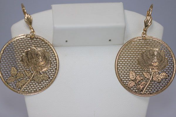 14K GOLD PLATED ROSE DESIGN DANGLING EARRINGS **|**|** 14K GOLD PLATED ROSE DESIGN DANGLING EARRINGS; METAL BRASS; BRAZILIAN JEWELRY; 14K GOLD PLATED ; MSRP: $0