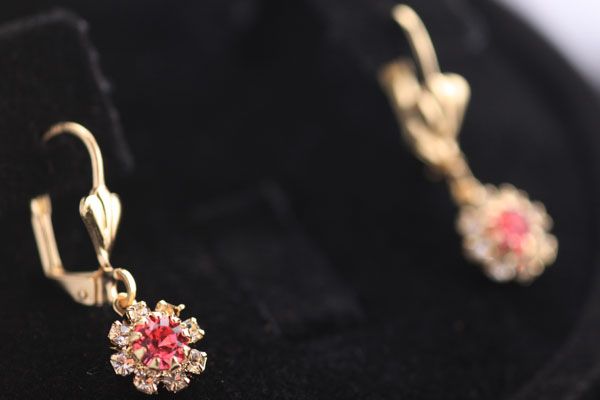 14K GOLD PLATED WHITE AND PINK CZ EARRINGS **|**|** 14K GOLD PLATED WHITE AND PINK CZ EARRINGS; METAL BRASS; BRAZILIAN JEWELRY; 14K GOLD PLATED ; MSRP: $0