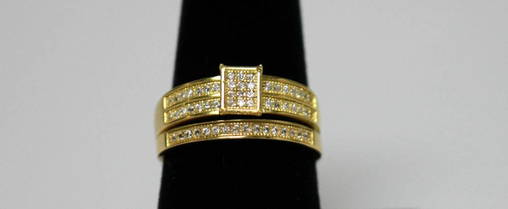 14K GOLD POLISHED ON .925 STERLING SILVER CZ ENGAGEMENT **|**|** 14K GOLD POLISHED ON .925 STERLING SILVER CZ ENGAGEMENT RINGS W/ BANDS SIZE: 9 &10