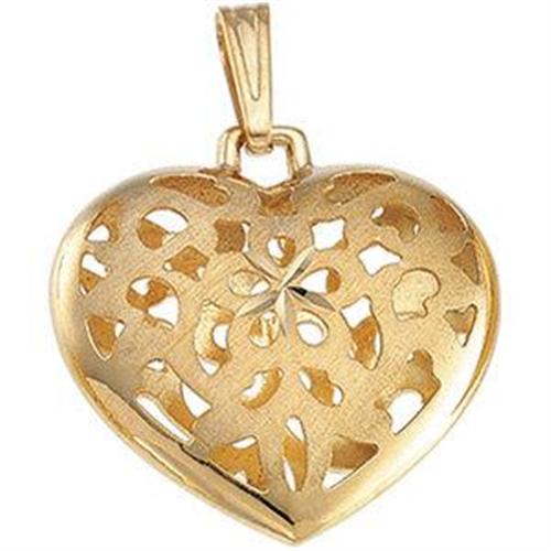 14k Yellow Gold Puffy HEART Pendant measuring 21 x 21mm and featuring an openwork design.