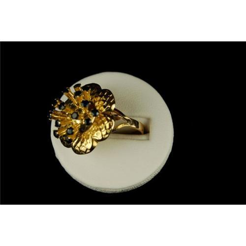 Beautiful 14k Yellow Gold Ring featuring a cluster of 17 Blue SAPPHIRES set up high inside a 'flowerlike' setting. The ring is a size 6 3/4 and I can resize it for you.