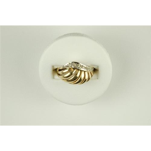 This 14k Yellow Gold ring features a lovely openwork top with a swirl of 5 DIAMONDS to aside. This very pretty ring is a Size 6 and it can be resized.