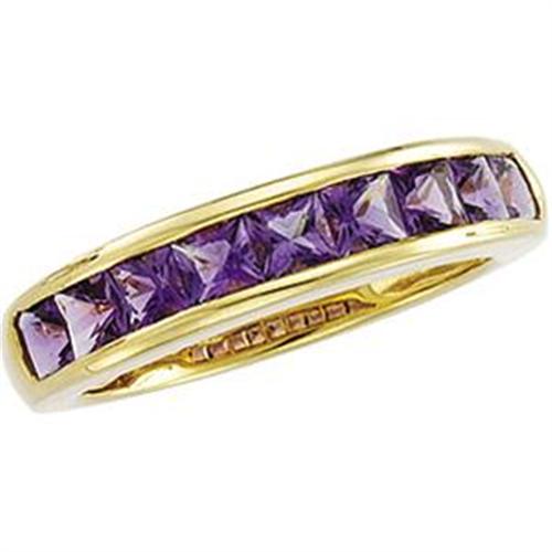 This 14k Yellow Gold Ring can also be worn as an AMETHYST WEDDING BAND. It features 9 Genuine PRINCESS CUT AMETHYSTS = TWO CARATS! This ring is a Size 7.