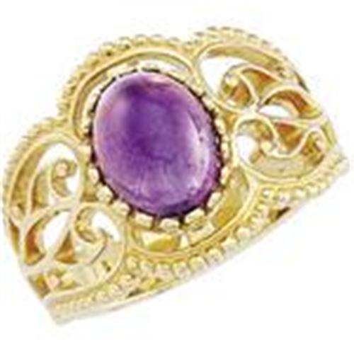 Antique Style 14k Yellow Gold ring featuring a beautiful Oval Amethyst (Genuine of course) = 2.50 CARATS!! The Amethyst is surrounded by magnificent scrollwork. The ring can also be worn as an Amethyst Wedding Band! It is a size 6, and I can resize it for you, either larger or smaller. It is in Pristine condition, of course!