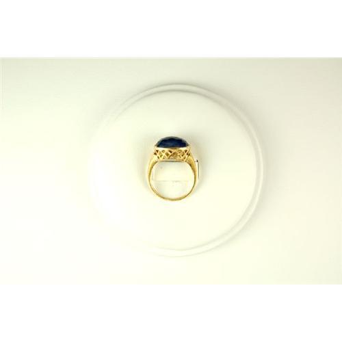 This 14k Yellow Gold ring features an Oval GENUINE BLUE SAPPHIRE = 7 CARATS! The Sapphire is beautifully faceted so it creates a 'sparkling' look. The ring is a Size 7 1/4 and it can be resized either larger or smaller.