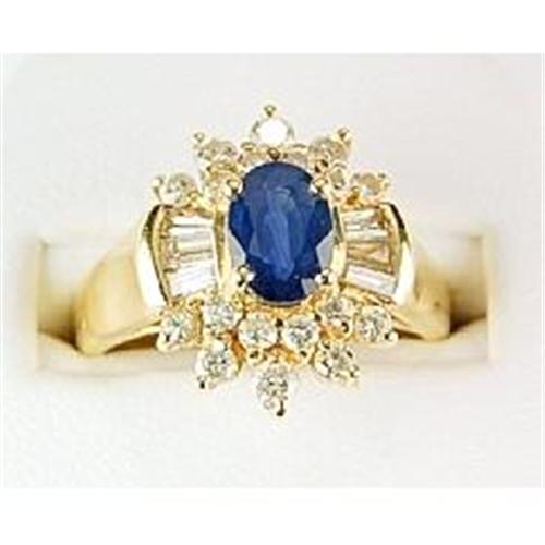 This 14k Yellow Gold Ring features a FINE OVAL BLUE SAPPHIRE = ONE CARAT! The Sapphire is surrounded by 6 Fine Baguette DIAMONDS and 18 Fine Round DIAMONDS. The DIAMOND Total Weight = .80 CARATS! This Ring is a Size 6 3/4 and it can be resized.