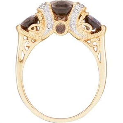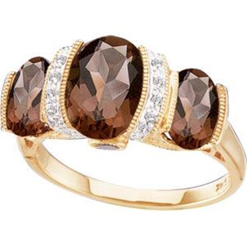 This 14k Yellow Gold Ring features 3 Oval GENUINE SMOKEY QUARTZ accented by 8 SPARKLING DIAMONDS. The SMOKEY QUARTZ Total Weight = 3 CARATS! This beautiful ring is a Size 6 and it can be resized just for you.