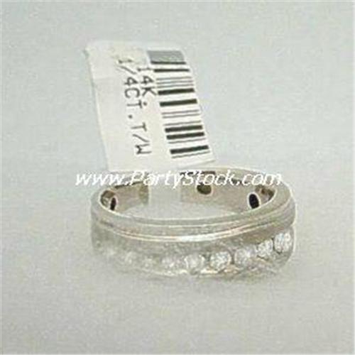 [137262656] 14K White Gold Ring with .25 CTW* Genuine, Natural Diamonds. Would make an excellent wedding band! We will size this ring for you at no extra charge! <p> We bought a "lot" of Close Out Items from a Premiere Retail Chain that went out of business in California recently. We're able to pass our HUGE savings on to YOU! Please note, our quantities are very limited and we will not be able to offer this item again, once it is sold out. <p> Retail value: $695.00 <p><p> * CTW = Carats Total Weight