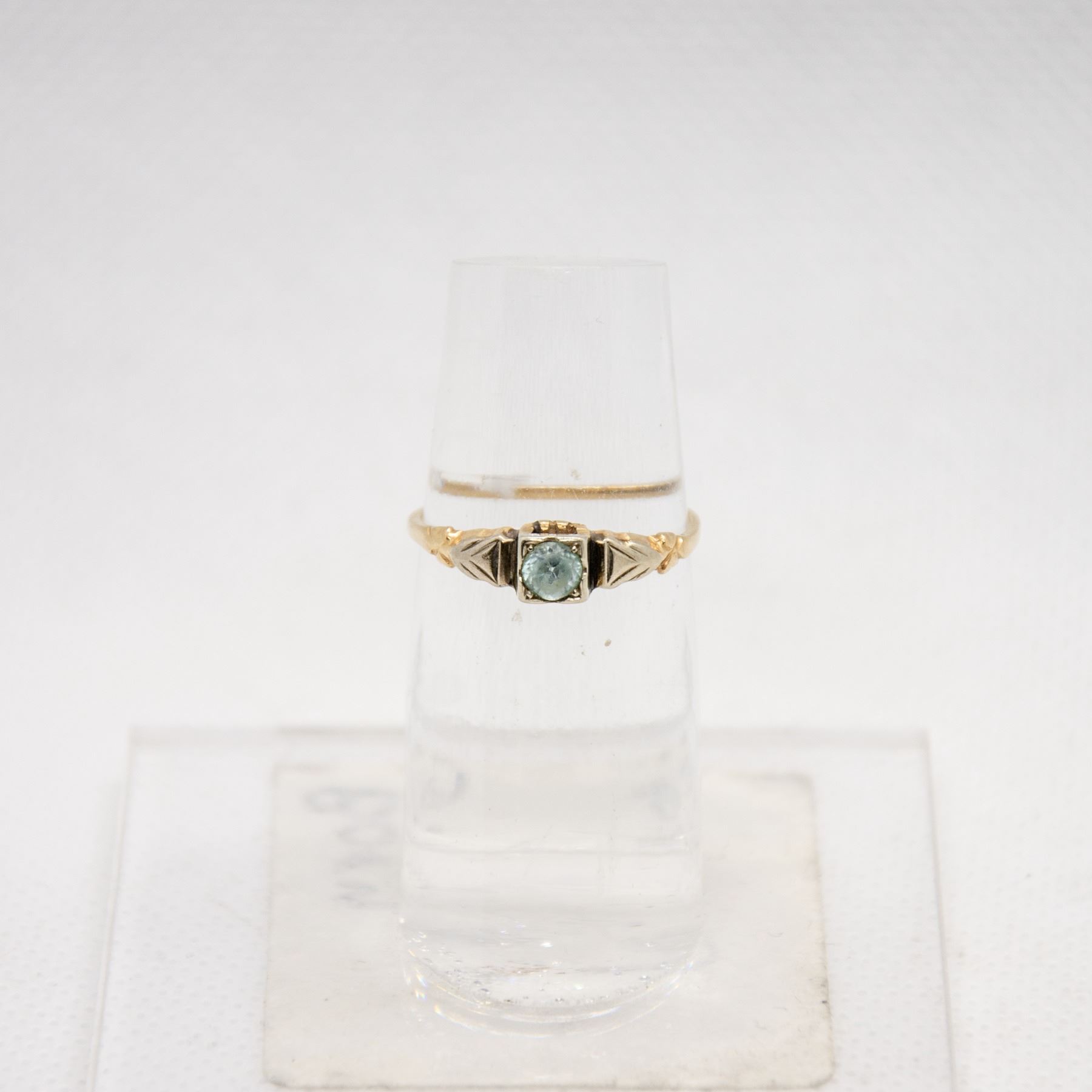 14K GOLD RING WITH AQUAMARINE SIZE 7.5 CUT SHANK