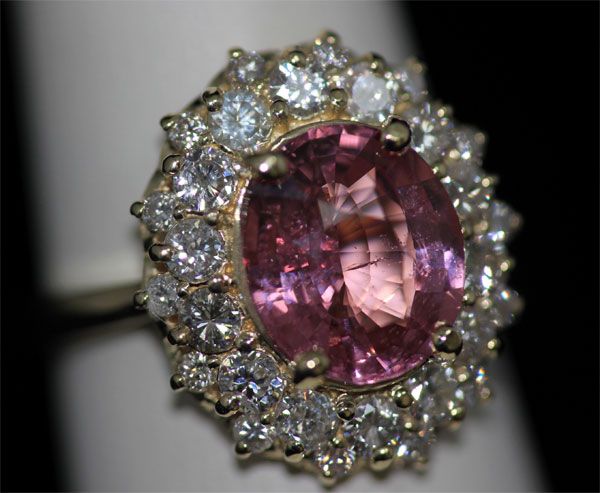 14K GOLD ROUND PINK TANZANIAN AND DIAMOND RING **|**|** 14K GOLD ROUND PINK TANZANIAN AND DIAMOND RING; MAINSTONE 2.47 CTW; DIAMOND 1.22 CTW; GOLD 5.0 GRAMS 14K YELLOW GOLD ; MSRP: $0