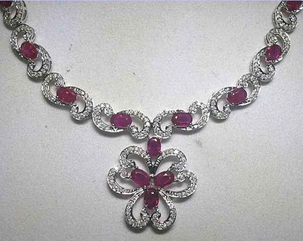 14KW 37.00GRMS NECKLACE WITH 14.25CT RUBY STONES & 3.00CT ROUND DIAMONDS
