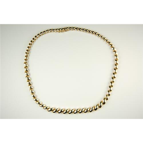This 14k Yellow GOLD NECKLACE features a GRADUATED SAN MARCO LINK. The widest link, in the front center of the Necklace, is 8MM Wide and the narrowest link near the clasp, is 5MM Wide. This VERY BEAUTIFUL SAN MARCO NECKLACE  is 17" in length and it has a very sturdy clasp.