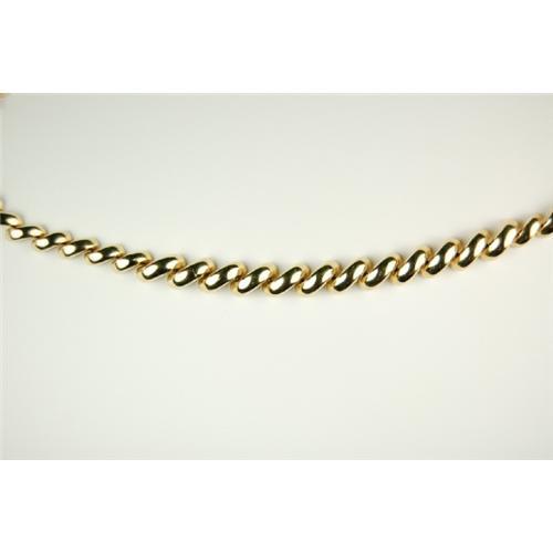 This 14k Yellow GOLD NECKLACE features a GRADUATED SAN MARCO LINK. The widest link, in the front center of the Necklace, is 8MM Wide and the narrowest link near the clasp, is 5MM Wide. This VERY BEAUTIFUL SAN MARCO NECKLACE is 17" in length and it has a very sturdy clasp.