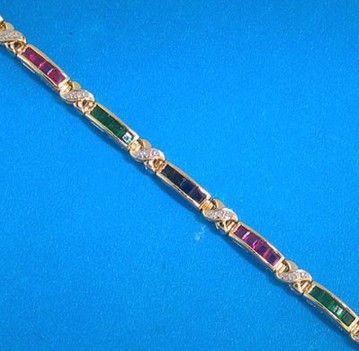 14K BRACELET WITH 0.13CT ROUND DIAMOND & 3.07CT COL(SAPPHIRE, EMERALD, RUBY)