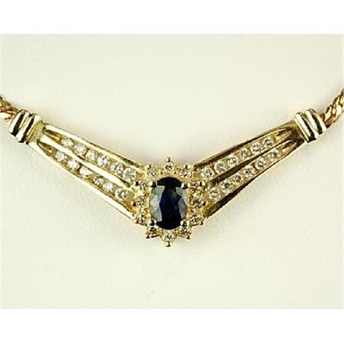 This 14k GOLD NECKLACE features a BEAUTIFUL BLUE SAPPHIRE = .75 CARATS! The Sapphire is surrounded by 36 SPARKLING DIAMONDS = .50 CARATS! This Necklace is 17 inches in length and it is very elegant!