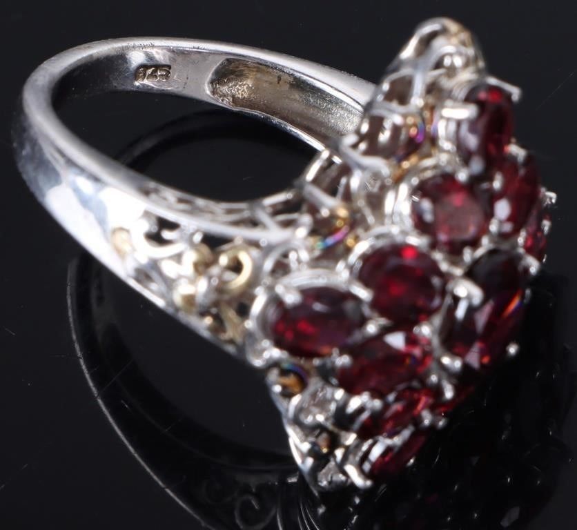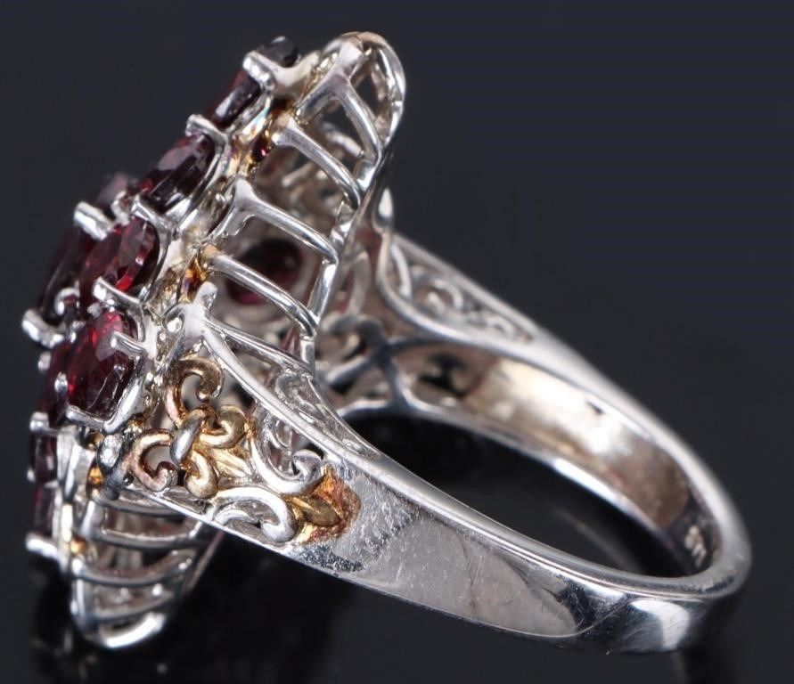 14K yellow gold over-lay sterling silver ornate garnet ladies ring with ~3.0CTW garnets.