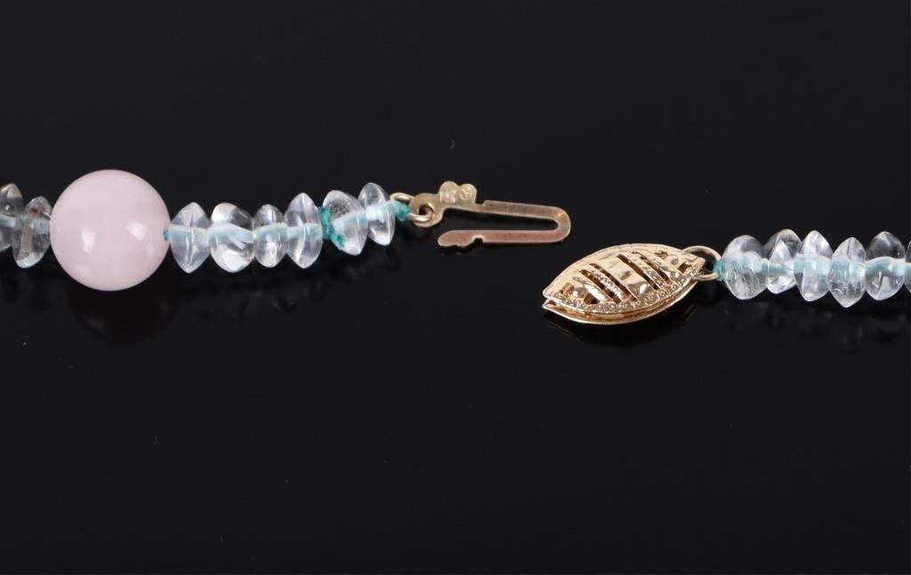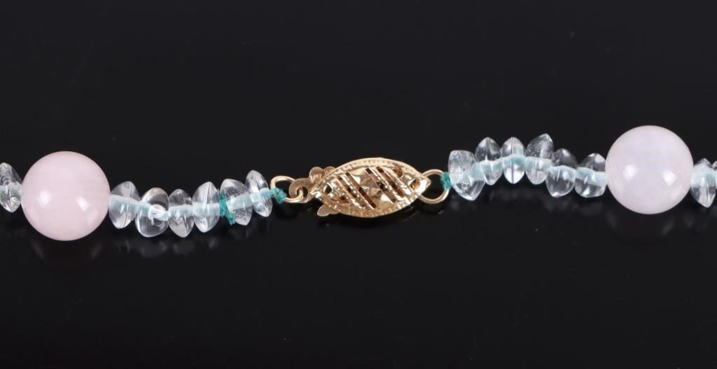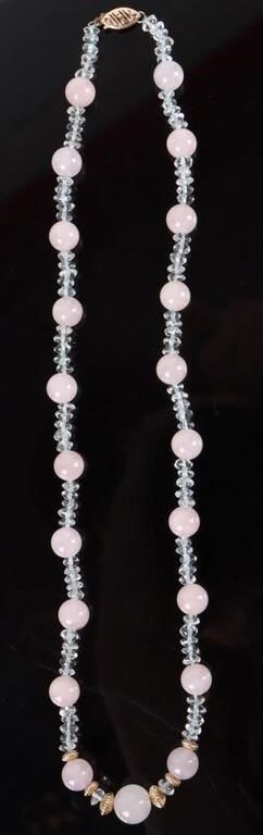 Pink Jade and 14K gold necklace. 18" long.