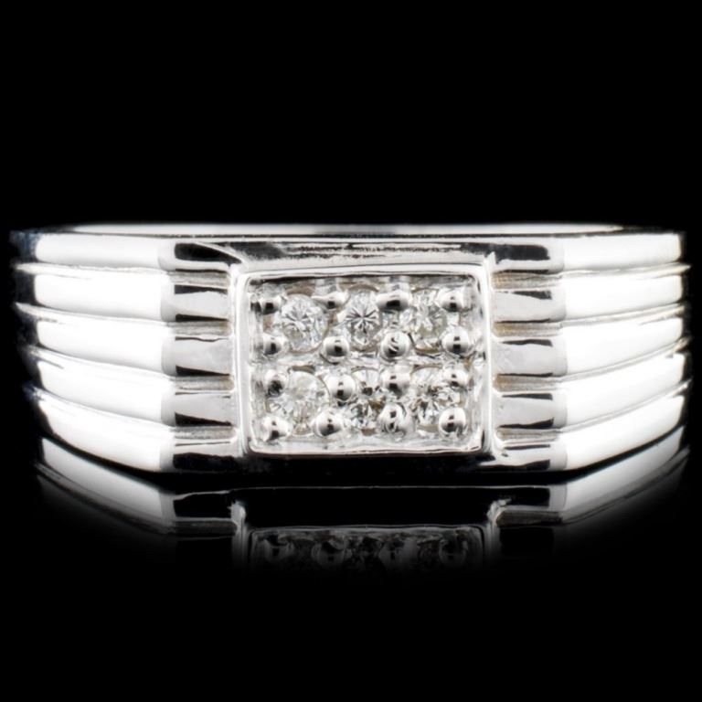 Estimated Retail Replacement Value: $1,750.00Ref: WAG1000Item no.: EJN016Specification:Gold Content: Solid 14K White GoldWeight of Item: 4.30 gramsSize: 10Country Made: U.S.A Main Gemstone: Natural Diamond Shape: Round Brilliant-cutQuantity: 6 countsTotal Carat Weight: 0.11ctwClarity Grade: SI1 - SI2Color Grade: H - I Hardness: 10 Great Condition - Shipping notes: We ship 4-10 Business day after the clearance of payment. Tracking numbers are emailed once the package(s) are shipped. Most shipments are sent by FEDEX Priority, UPS Priority, or US PRIORITY MAIL INSURED