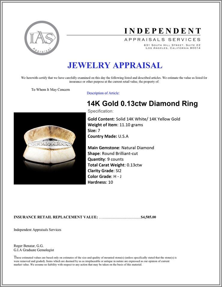 Total Carat Weight: 0.13ctw