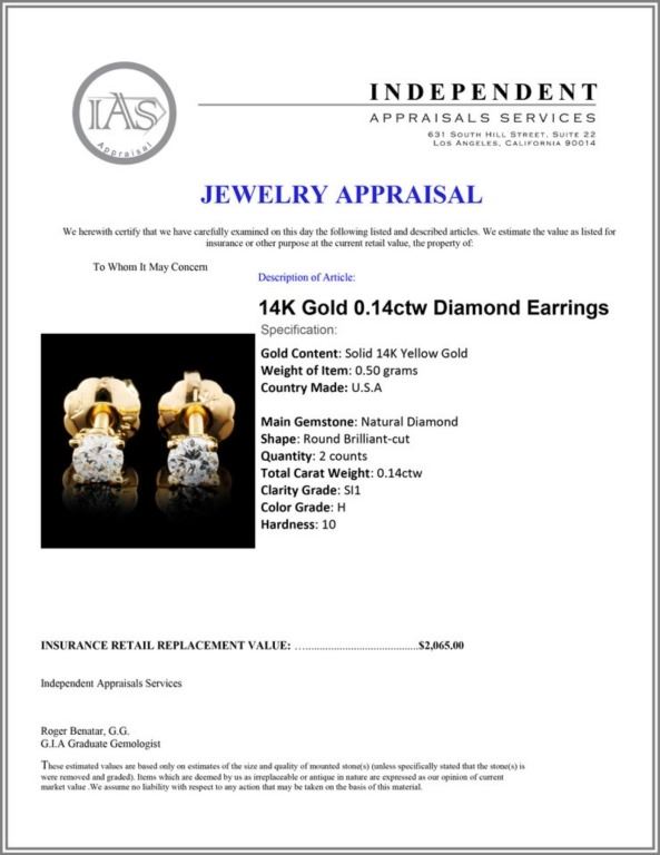 Regarding Appraised Jewelry and Loose Stones - Auctionfarm sends them out to a third party for Retail Replacement Value Appraisals, which are the most common. These types of evaluations are written for insurance needs. This would be the cost to replace the jewelry with an item of equal quality and kind, considered to be the current market price or the replacement value. This type of appraisal is done to protect you in the event of damage or loss of a valuable item. Our appraisals are conducted by independent 3rd Party appraisal firms that utilizes Certified GIA Gemologist. Appraisals should be used for verification of gemstone and/or metal weight, size, and grade only, not actual value. Appraisal value should be considered for insurance purposes only, not actual value, as price varies greatly from retail locations thru out the world. Items should not be purchased with the expectation to resell for appraisal price, or for profit.