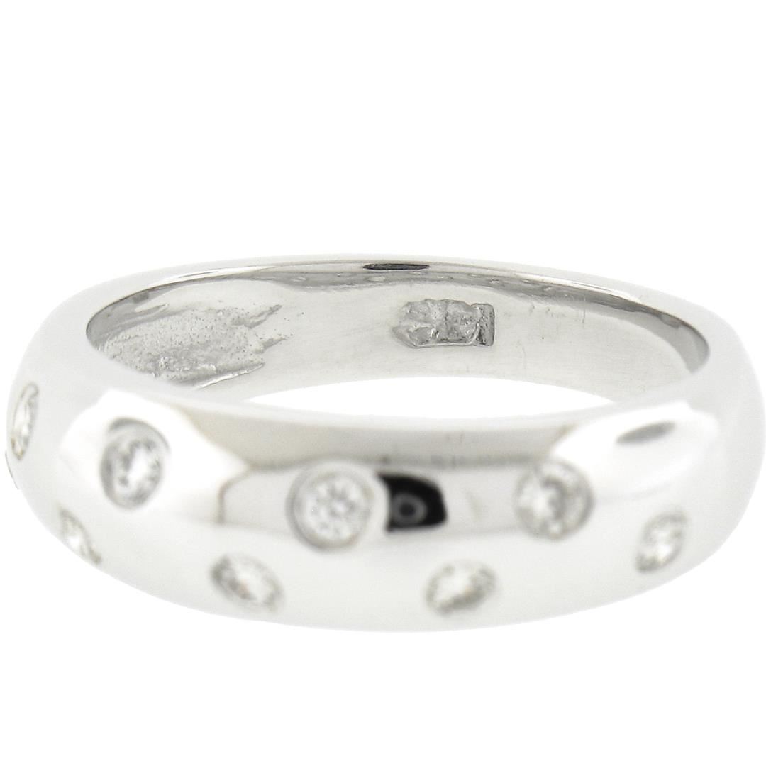 A solid 14k white gold band ring, with 9 round cut natural diamonds (H - VS1 ; 0.18ctw). The ring is size 5.0, weighs a total of 3.8 grams, and measures 5.9mm wide.