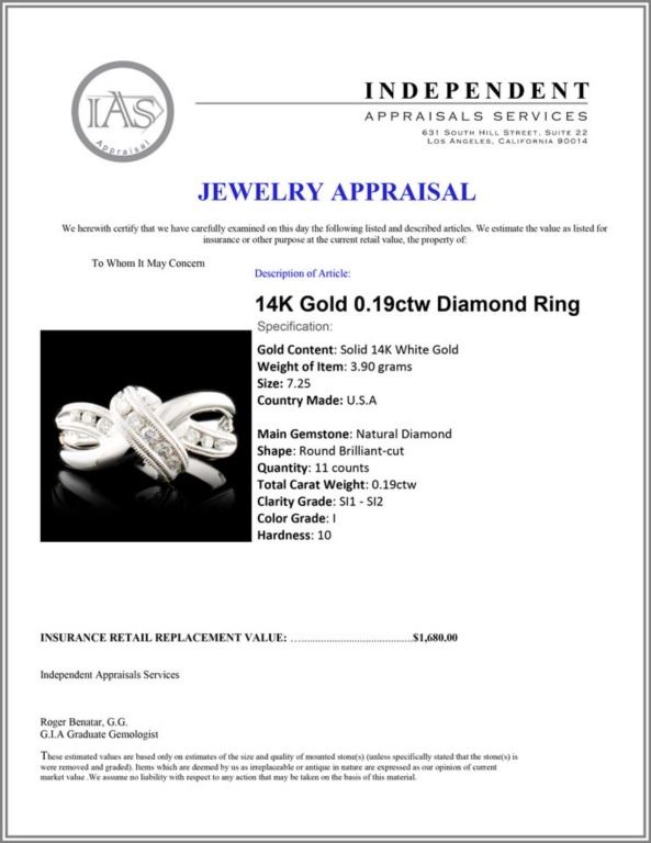 Total Carat Weight: 0.19ctw