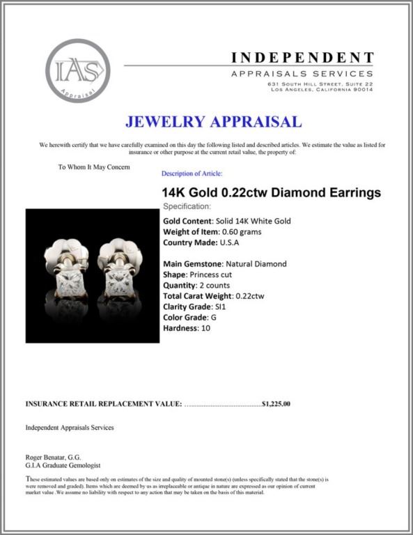 Regarding Appraised Jewelry and Loose Stones - Auctionfarm sends them out to a third party for Retail Replacement Value Appraisals, which are the most common. These types of evaluations are written for insurance needs. This would be the cost to replace the jewelry with an item of equal quality and kind, considered to be the current market price or the replacement value. This type of appraisal is done to protect you in the event of damage or loss of a valuable item. Our appraisals are conducted by independent 3rd Party appraisal firms that utilizes Certified GIA Gemologist. Appraisals should be used for verification of gemstone and/or metal weight, size, and grade only, not actual value. Appraisal value should be considered for insurance purposes only, not actual value, as price varies greatly from retail locations thru out the world. Items should not be purchased with the expectation to resell for appraisal price, or for profit.