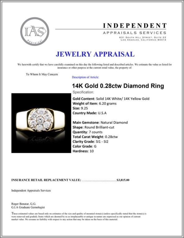 Regarding Appraised Jewelry and Loose Stones - Auctionfarm sends them out to a third party for Retail Replacement Value Appraisals, which are the most common. These types of evaluations are written for insurance needs. This would be the cost to replace the jewelry with an item of equal quality and kind, considered to be the current market price or the replacement value. This type of appraisal is done to protect you in the event of damage or loss of a valuable item. Our appraisals are conducted by independent 3rd Party appraisal firms that utilizes Certified GIA Gemologist. Appraisals should be used for verification of gemstone and/or metal weight, size, and grade only, not actual value. Appraisal value should be considered for insurance purposes only, not actual value, as price varies greatly from retail locations thru out the world. Items should not be purchased with the expectation to resell for appraisal price, or for profit.