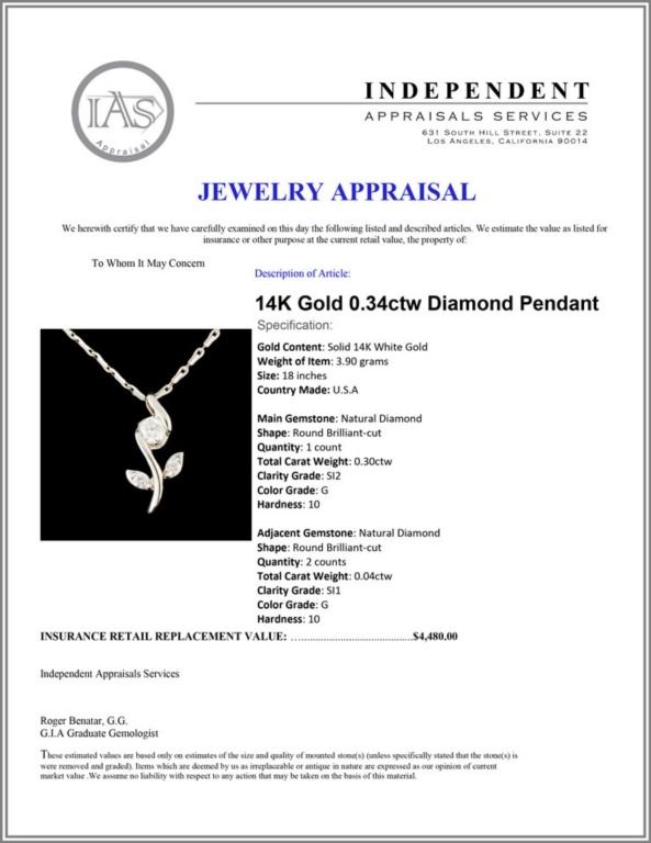 Regarding Appraised Jewelry and Loose Stones - Auctionfarm sends them out to a third party for Retail Replacement Value Appraisals, which are the most common. These types of evaluations are written for insurance needs. This would be the cost to replace the jewelry with an item of equal quality and kind, considered to be the current market price or the replacement value. This type of appraisal is done to protect you in the event of damage or loss of a valuable item. Our appraisals are conducted by independent 3rd Party appraisal firms that utilizes Certified GIA Gemologist. Appraisals should be used for verification of gemstone and/or metal weight, size, and grade only, not actual value. Appraisal value should be considered for insurance purposes only, not actual value, as price varies greatly from retail locations thru out the world. Items should not be purchased with the expectation to resell for appraisal price, or for profit.