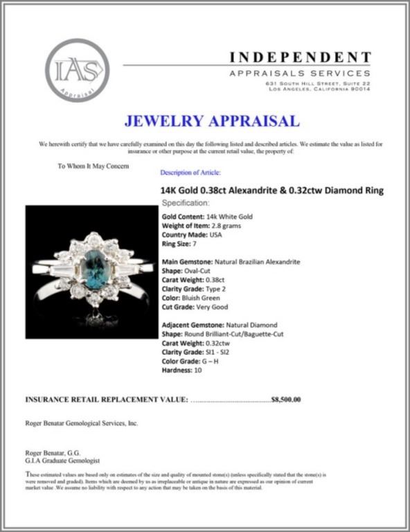 Regarding Appraised Jewelry and Loose Stones - Auctionfarm sends them out to a third party for Retail Replacement Value Appraisals, which are the most common. These types of evaluations are written for insurance needs. This would be the cost to replace the jewelry with an item of equal quality and kind, considered to be the current market price or the replacement value. This type of appraisal is done to protect you in the event of damage or loss of a valuable item. Our appraisals are conducted by independent 3rd Party appraisal firms that utilizes Certified GIA Gemologist. Appraisals should be used for verification of gemstone and/or metal weight, size, and grade only, not actual value. Appraisal value should be considered for insurance purposes only, not actual value, as price varies greatly from retail locations thru out the world. Items should not be purchased with the expectation to resell for appraisal price, or for profit.