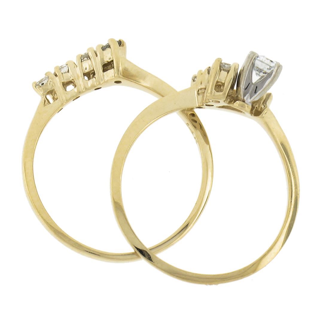A solid 14k yellow gold ring & band set, with 8 round cut natural diamonds (G/H- SI1/SI2 ; 0.40ctw). The ring is size 6.0, weighs a total of 3.18 grams, and measures 9.7mm wide.