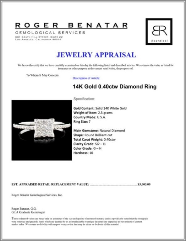 Regarding Appraised Jewelry and Loose Stones - Auctionfarm sends them out to a third party for Retail Replacement Value Appraisals, which are the most common. These types of evaluations are written for insurance needs. This would be the cost to replace the jewelry with an item of equal quality and kind, considered to be the current market price or the replacement value. This type of appraisal is done to protect you in the event of damage or loss of a valuable item. Our appraisals are conducted by independent 3rd Party appraisal firms that utilizes Certified GIA Gemologist. Appraisals should be used for verification of gemstone and/or metal weight, size, and grade only, not actual value. Appraisal value should be considered for insurance purposes only, not actual value, as price varies greatly from retail locations thru out the world. Items should not be purchased with the expectation to resell for appraisal price, or for profit.