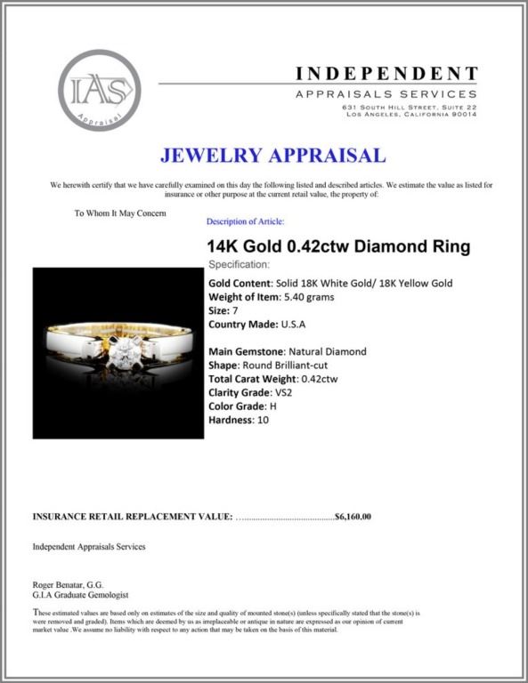 Regarding Appraised Jewelry and Loose Stones - Auctionfarm sends them out to a third party for Retail Replacement Value Appraisals, which are the most common. These types of evaluations are written for insurance needs. This would be the cost to replace the jewelry with an item of equal quality and kind, considered to be the current market price or the replacement value. This type of appraisal is done to protect you in the event of damage or loss of a valuable item. Our appraisals are conducted by independent 3rd Party appraisal firms that utilizes Certified GIA Gemologist. Appraisals should be used for verification of gemstone and/or metal weight, size, and grade only, not actual value. Appraisal value should be considered for insurance purposes only, not actual value, as price varies greatly from retail locations thru out the world. Items should not be purchased with the expectation to resell for appraisal price, or for profit.