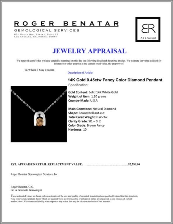 Regarding Appraised Jewelry and Loose Stones - Auctionfarm sends them out to a third party for Retail Replacement Value Appraisals, which are the most common. These types of evaluations are written for insurance needs. This would be the cost to replace the jewelry with an item of equal quality and kind, considered to be the current market price or the replacement value. This type of appraisal is done to protect you in the event of damage or loss of a valuable item. Our appraisals are conducted by independent 3rd Party appraisal firms that utilizes Certified GIA Gemologist. Appraisals should be used for verification of gemstone and/or metal weight, size, and grade only, not actual value. Appraisal value should be considered for insurance purposes only, not actual value, as price varies greatly from retail locations thru out the world. Items should not be purchased with the expectation to resell for appraisal price, or for profit.