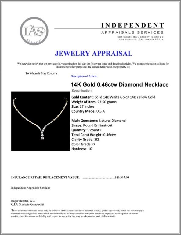 Regarding Appraised Jewelry and Loose Stones - Auctionfarm sends them out to a third party for Retail Replacement Value Appraisals, which are the most common. These types of evaluations are written for insurance needs. This would be the cost to replace the jewelry with an item of equal quality and kind, considered to be the current market price or the replacement value. This type of appraisal is done to protect you in the event of damage or loss of a valuable item. Our appraisals are conducted by independent 3rd Party appraisal firms that utilizes Certified GIA Gemologist. Appraisals should be used for verification of gemstone and/or metal weight, size, and grade only, not actual value. Appraisal value should be considered for insurance purposes only, not actual value, as price varies greatly from retail locations thru out the world. Items should not be purchased with the expectation to resell for appraisal price, or for profit.