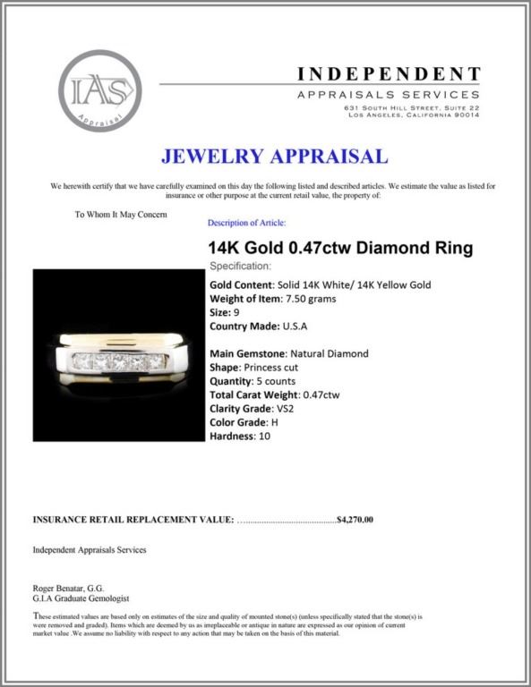 Regarding Appraised Jewelry and Loose Stones - Auctionfarm sends them out to a third party for Retail Replacement Value Appraisals, which are the most common. These types of evaluations are written for insurance needs. This would be the cost to replace the jewelry with an item of equal quality and kind, considered to be the current market price or the replacement value. This type of appraisal is done to protect you in the event of damage or loss of a valuable item. Our appraisals are conducted by independent 3rd Party appraisal firms that utilizes Certified GIA Gemologist. Appraisals should be used for verification of gemstone and/or metal weight, size, and grade only, not actual value. Appraisal value should be considered for insurance purposes only, not actual value, as price varies greatly from retail locations thru out the world. Items should not be purchased with the expectation to resell for appraisal price, or for profit.