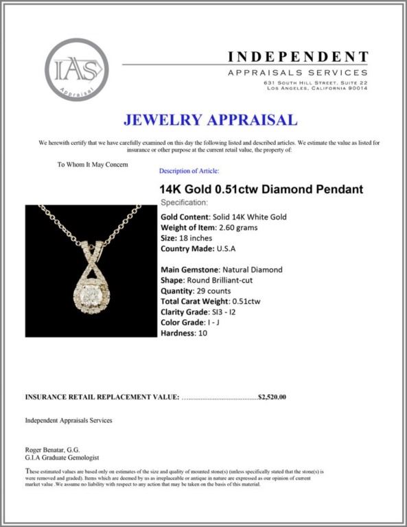 Regarding Appraised Jewelry and Loose Stones - Auctionfarm sends them out to a third party for Retail Replacement Value Appraisals, which are the most common. These types of evaluations are written for insurance needs. This would be the cost to replace the jewelry with an item of equal quality and kind, considered to be the current market price or the replacement value. This type of appraisal is done to protect you in the event of damage or loss of a valuable item. Our appraisals are conducted by independent 3rd Party appraisal firms that utilizes Certified GIA Gemologist. Appraisals should be used for verification of gemstone and/or metal weight, size, and grade only, not actual value. Appraisal value should be considered for insurance purposes only, not actual value, as price varies greatly from retail locations thru out the world. Items should not be purchased with the expectation to resell for appraisal price, or for profit.