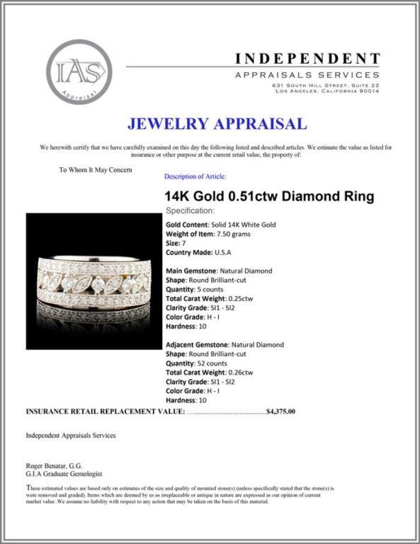 Regarding Appraised Jewelry and Loose Stones - Auctionfarm sends them out to a third party for Retail Replacement Value Appraisals, which are the most common. These types of evaluations are written for insurance needs. This would be the cost to replace the jewelry with an item of equal quality and kind, considered to be the current market price or the replacement value. This type of appraisal is done to protect you in the event of damage or loss of a valuable item. Our appraisals are conducted by independent 3rd Party appraisal firms that utilizes Certified GIA Gemologist. Appraisals should be used for verification of gemstone and/or metal weight, size, and grade only, not actual value. Appraisal value should be considered for insurance purposes only, not actual value, as price varies greatly from retail locations thru out the world. Items should not be purchased with the expectation to resell for appraisal price, or for profit.