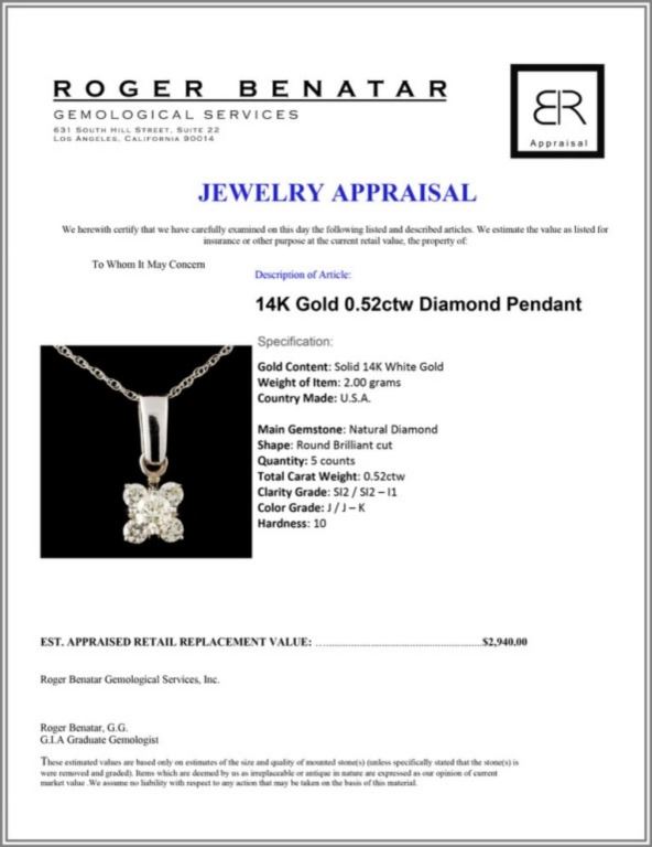 Regarding Appraised Jewelry and Loose Stones - Auctionfarm sends them out to a third party for Retail Replacement Value Appraisals, which are the most common. These types of evaluations are written for insurance needs. This would be the cost to replace the jewelry with an item of equal quality and kind, considered to be the current market price or the replacement value. This type of appraisal is done to protect you in the event of damage or loss of a valuable item. Our appraisals are conducted by independent 3rd Party appraisal firms that utilizes Certified GIA Gemologist. Appraisals should be used for verification of gemstone and/or metal weight, size, and grade only, not actual value. Appraisal value should be considered for insurance purposes only, not actual value, as price varies greatly from retail locations thru out the world. Items should not be purchased with the expectation to resell for appraisal price, or for profit.