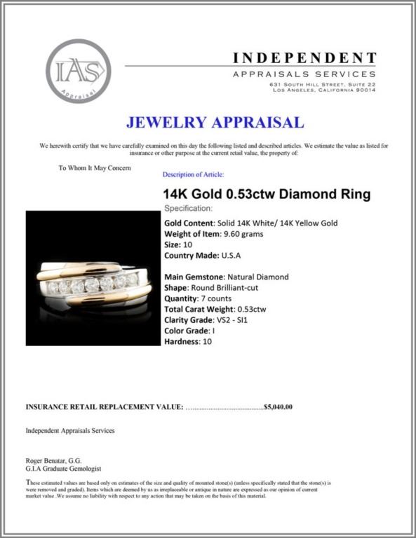 Total Carat Weight: 0.53ctw