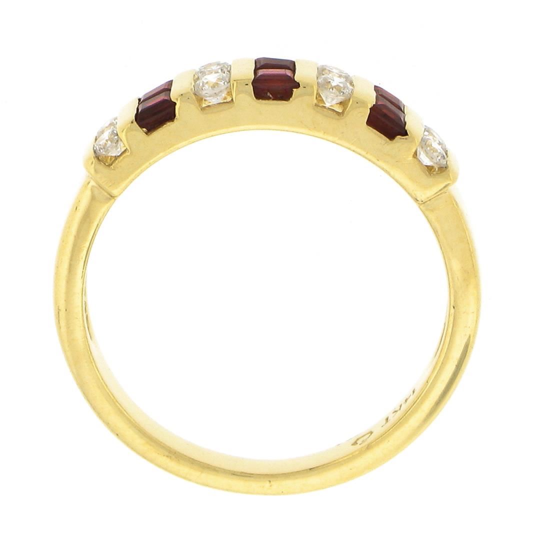14K Gold 0.54 ctw Alternating Square Ruby & Round Diamond Channel Set Band Ring