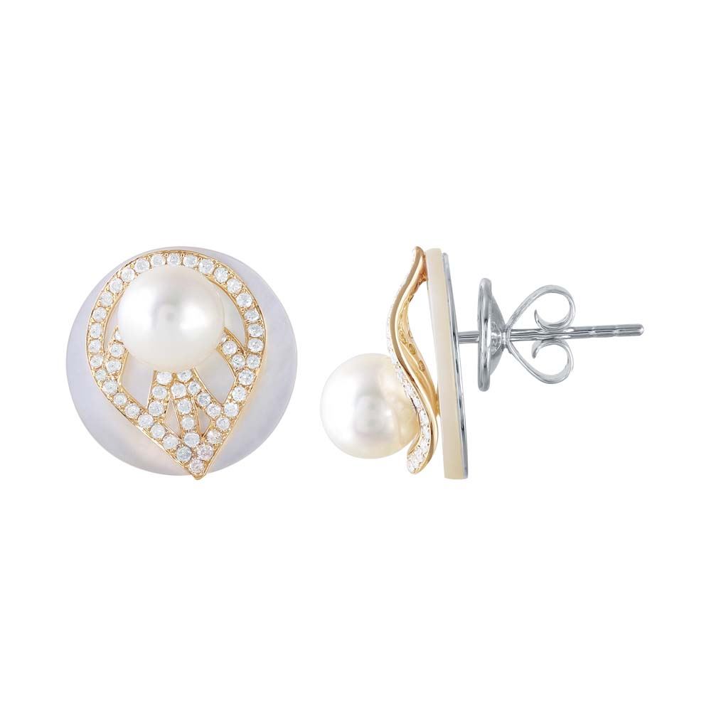 REF-112M9F ---- 14K Gold 0.56 CTW Diamond & Pearl Earring