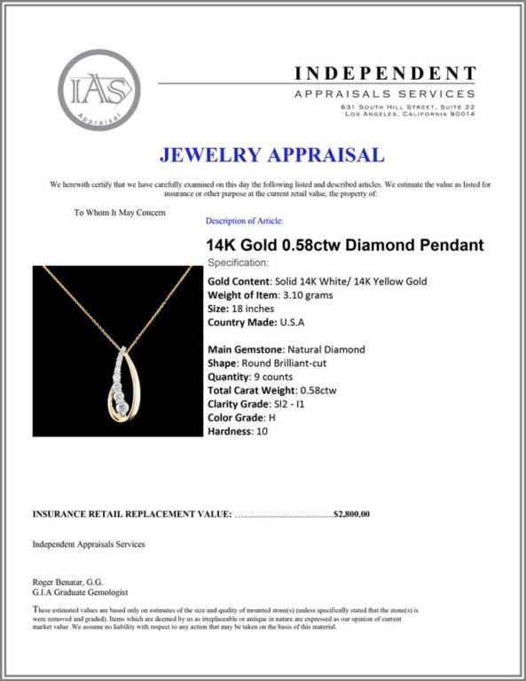 Regarding Appraised Jewelry and Loose Stones - Auctionfarm sends them out to a third party for Retail Replacement Value Appraisals, which are the most common. These types of evaluations are written for insurance needs. This would be the cost to replace the jewelry with an item of equal quality and kind, considered to be the current market price or the replacement value. This type of appraisal is done to protect you in the event of damage or loss of a valuable item. Our appraisals are conducted by independent 3rd Party appraisal firms that utilizes Certified GIA Gemologist. Appraisals should be used for verification of gemstone and/or metal weight, size, and grade only, not actual value. Appraisal value should be considered for insurance purposes only, not actual value, as price varies greatly from retail locations thru out the world. Items should not be purchased with the expectation to resell for appraisal price, or for profit.