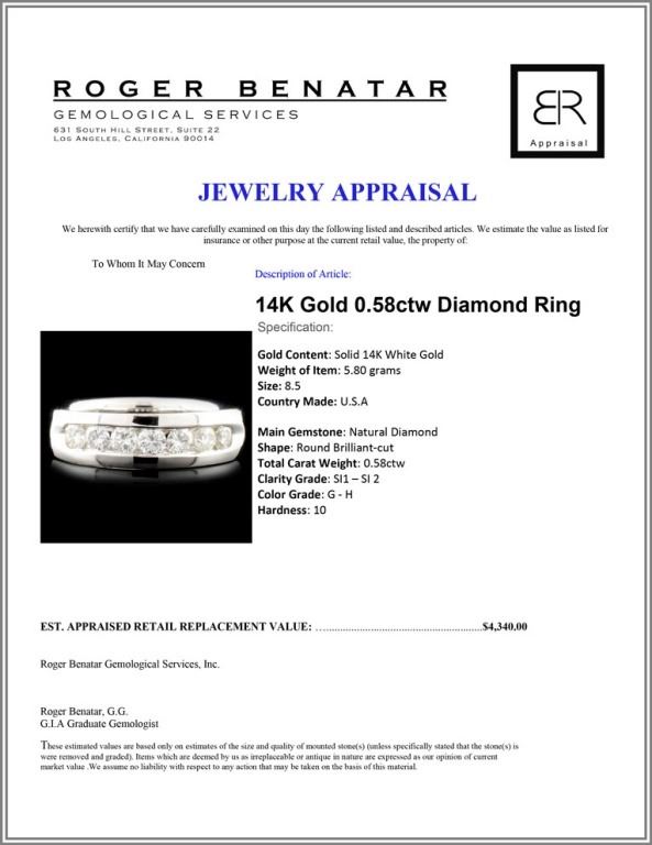 Total Carat Weight: 0.58ctw