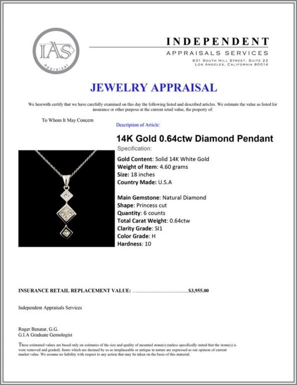 Regarding Appraised Jewelry and Loose Stones - Auctionfarm sends them out to a third party for Retail Replacement Value Appraisals, which are the most common. These types of evaluations are written for insurance needs. This would be the cost to replace the jewelry with an item of equal quality and kind, considered to be the current market price or the replacement value. This type of appraisal is done to protect you in the event of damage or loss of a valuable item. Our appraisals are conducted by independent 3rd Party appraisal firms that utilizes Certified GIA Gemologist. Appraisals should be used for verification of gemstone and/or metal weight, size, and grade only, not actual value. Appraisal value should be considered for insurance purposes only, not actual value, as price varies greatly from retail locations thru out the world. Items should not be purchased with the expectation to resell for appraisal price, or for profit.