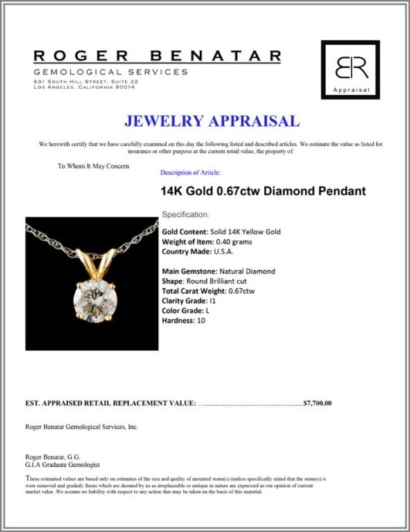 Regarding Appraised Jewelry and Loose Stones - Auctionfarm sends them out to a third party for Retail Replacement Value Appraisals, which are the most common. These types of evaluations are written for insurance needs. This would be the cost to replace the jewelry with an item of equal quality and kind, considered to be the current market price or the replacement value. This type of appraisal is done to protect you in the event of damage or loss of a valuable item. Our appraisals are conducted by independent 3rd Party appraisal firms that utilizes Certified GIA Gemologist. Appraisals should be used for verification of gemstone and/or metal weight, size, and grade only, not actual value. Appraisal value should be considered for insurance purposes only, not actual value, as price varies greatly from retail locations thru out the world. Items should not be purchased with the expectation to resell for appraisal price, or for profit.