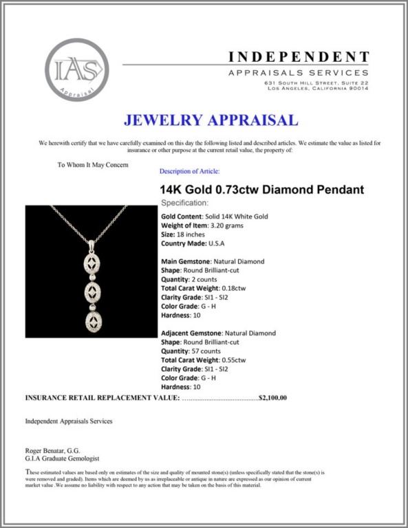 Regarding Appraised Jewelry and Loose Stones - Auctionfarm sends them out to a third party for Retail Replacement Value Appraisals, which are the most common. These types of evaluations are written for insurance needs. This would be the cost to replace the jewelry with an item of equal quality and kind, considered to be the current market price or the replacement value. This type of appraisal is done to protect you in the event of damage or loss of a valuable item. Our appraisals are conducted by independent 3rd Party appraisal firms that utilizes Certified GIA Gemologist. Appraisals should be used for verification of gemstone and/or metal weight, size, and grade only, not actual value. Appraisal value should be considered for insurance purposes only, not actual value, as price varies greatly from retail locations thru out the world. Items should not be purchased with the expectation to resell for appraisal price, or for profit.